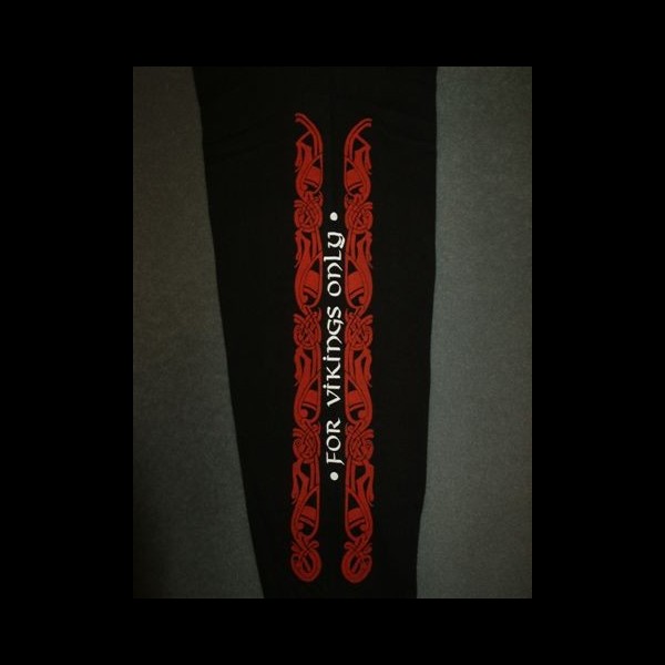 Long sleeved t-shirt with helmet, sword and axe on chest. For Vikings Only text on sleves and FVO emblem on back.